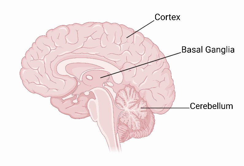 Next, brain scans were done to see how big the brain and some of its main components were. The components included the cortex, which is the outside layer of the brain. Components of the basal ganglia were also measured. One of the components of the basal ganglia, the striatum, is the main part of the brain affected by HD. The size of the cerebellum, which helps the basal ganglia coordinate movement, was also measured. They then looked at how many folds there were in the cortex and the size of the folds. More folds mean more brain cells, which is why humans have much more wrinkly-looking brains than other animals.